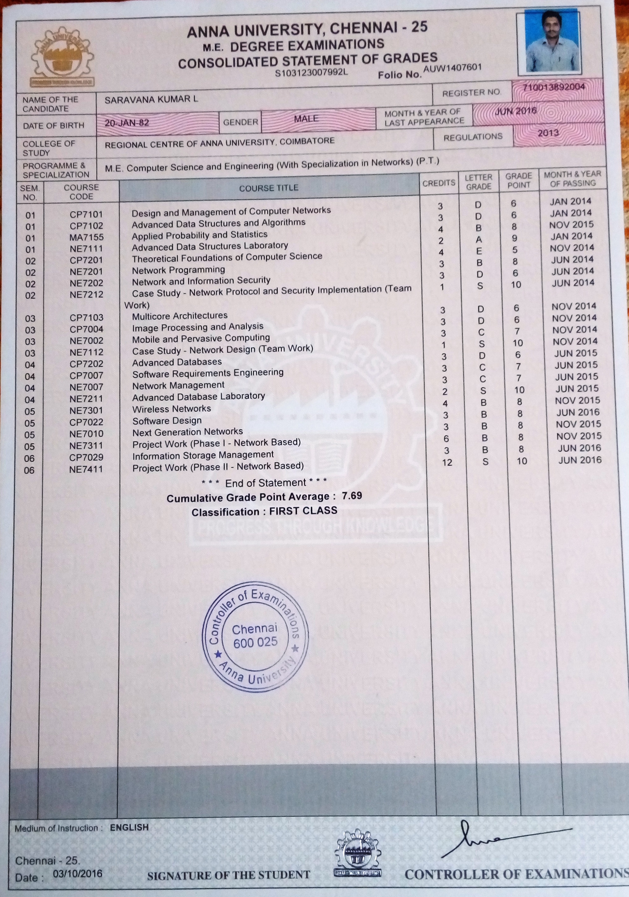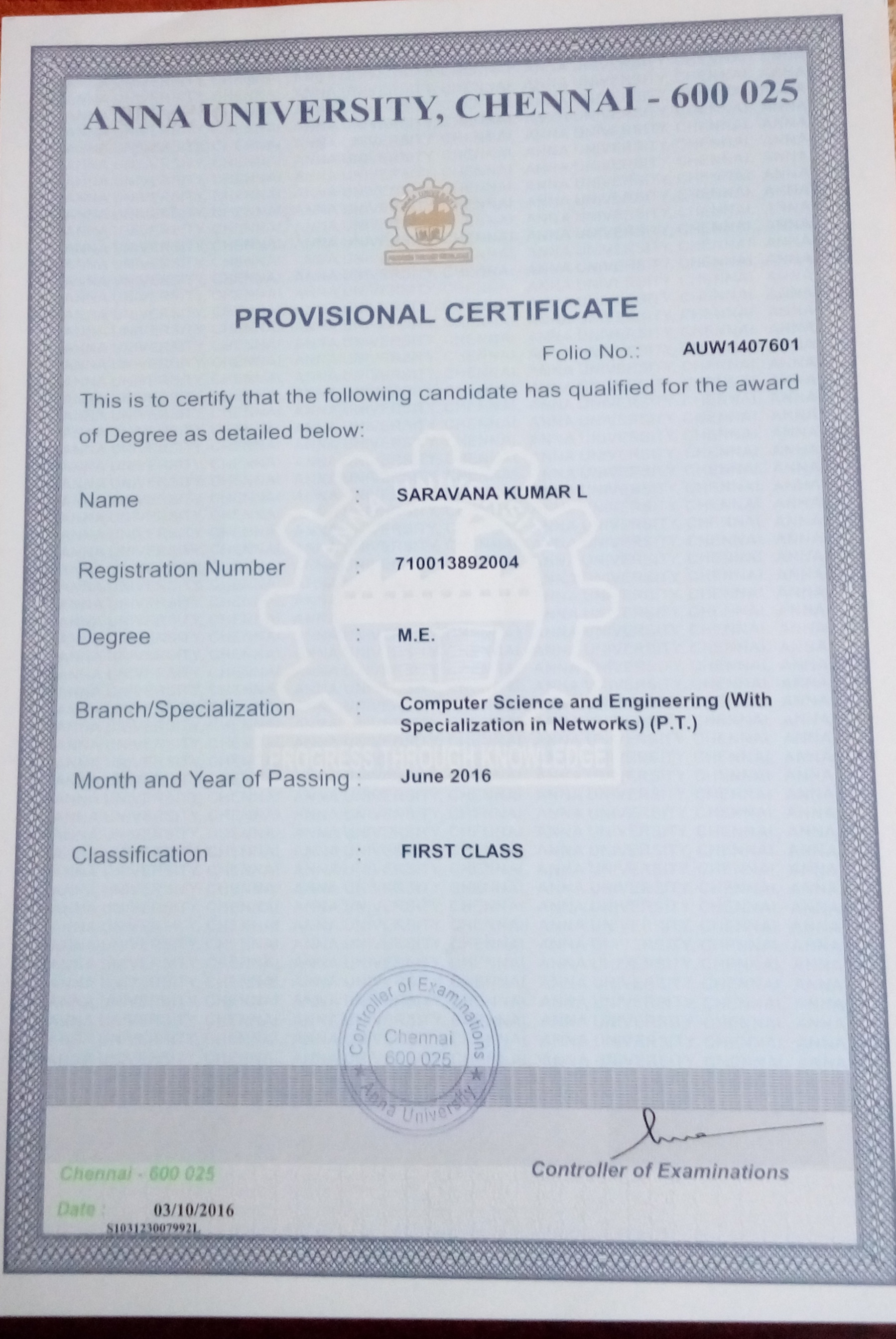 Qualification: M.Tech (Networking)